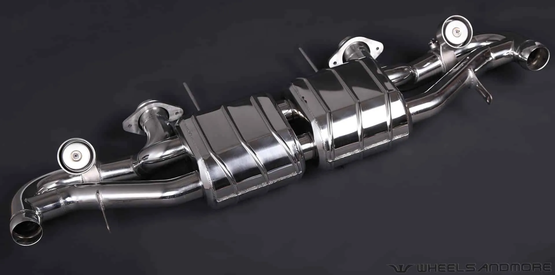 Valve controlled stainless steel exhaustsystem by Wheelsandmore – perfect fitment without required additional work as welding or cutting. Power increasing developed on latest dyno. 100% handcrafted in Germany of high quality 1.4828 stainless steel and with polished high glossy finish. With the remote control the system switches between stock-, sport- and full race sound.