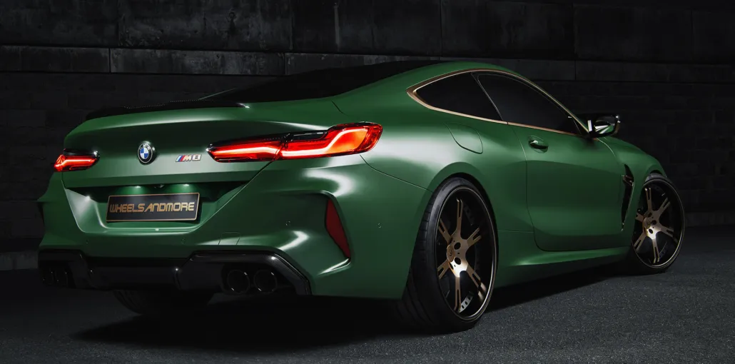 The right gear train for the BMW M8 Competition: wheelsandmore rims called UD-1 in the size 10×20 inches on the front axle and huge 12×20 inches on the rear axle. Additional high-performance tires from Michelin with the designation Pilot Sport 4S in size 275/35-20 and 295/35-20 complete the whole thing.