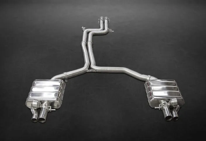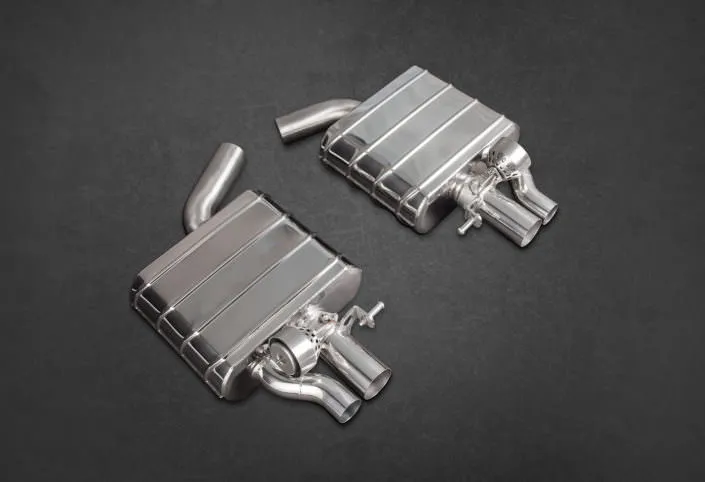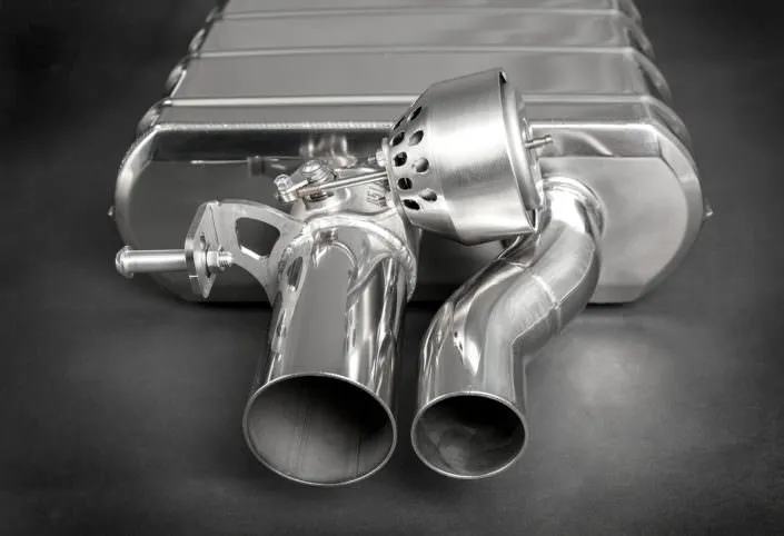The exhaust system is handcrafted of 1.4828 stainless steel exceptionel in Germany on order and contains 2 valve flaps. Controlling the flaps is done with our control unit.