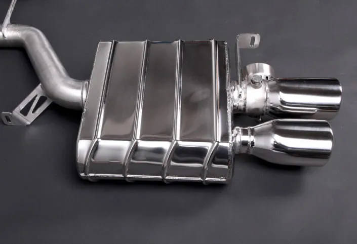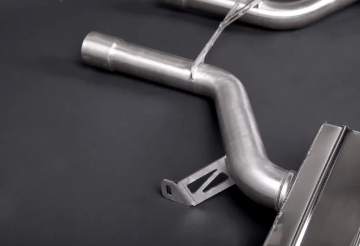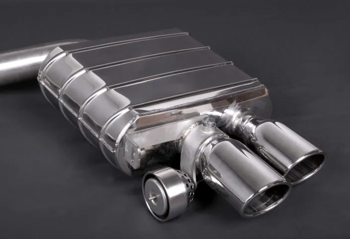 The exhaust is handcrafted of 1.4828 stainless steel exceptionel in Germany on order and contains 2 valve flaps. Controlling the flaps is done with our control unit.