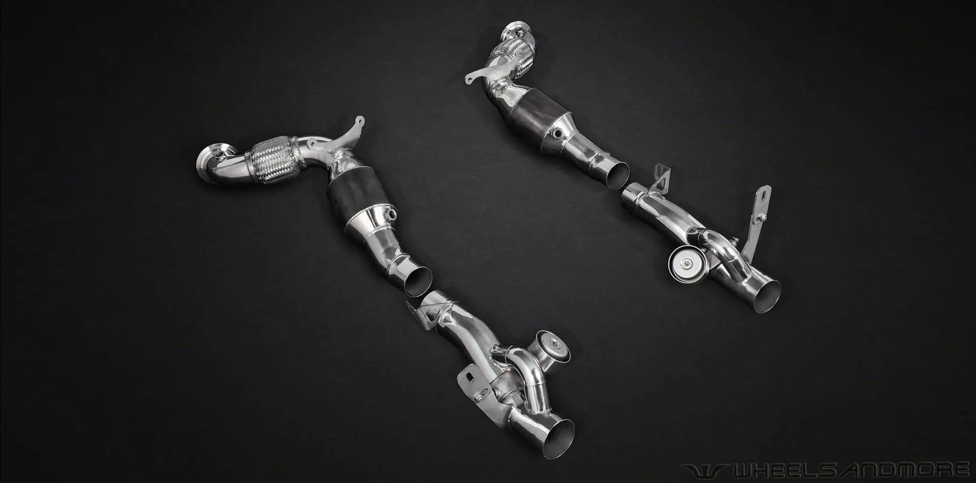 Matching the visual and technical demand, enhance your Ferrari Tributo to a priceless acoustic sound with this exhaust system. Already with the first gas push a gabble, or hoarse hissing up to high-frequency screaming escape the tailpipes of the sport exhaust system. The exhaust system is made of heat-resistant 1.4828 stainless steel. All made in Germany, of course.