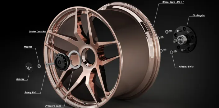 The UD-1 alloy wheel: one-piece center lock forged rim, available in 20 inches to begin with. Other sizes are in preparation. And it’s still getting better: weight per rim 20 inch (9.0 / 10.0 / 11.0 and 12.0×20) 9-12 Kg.