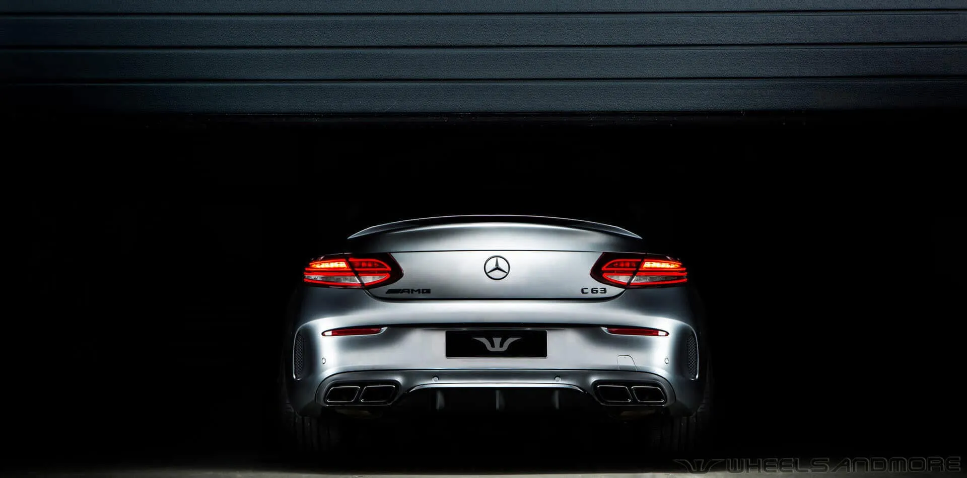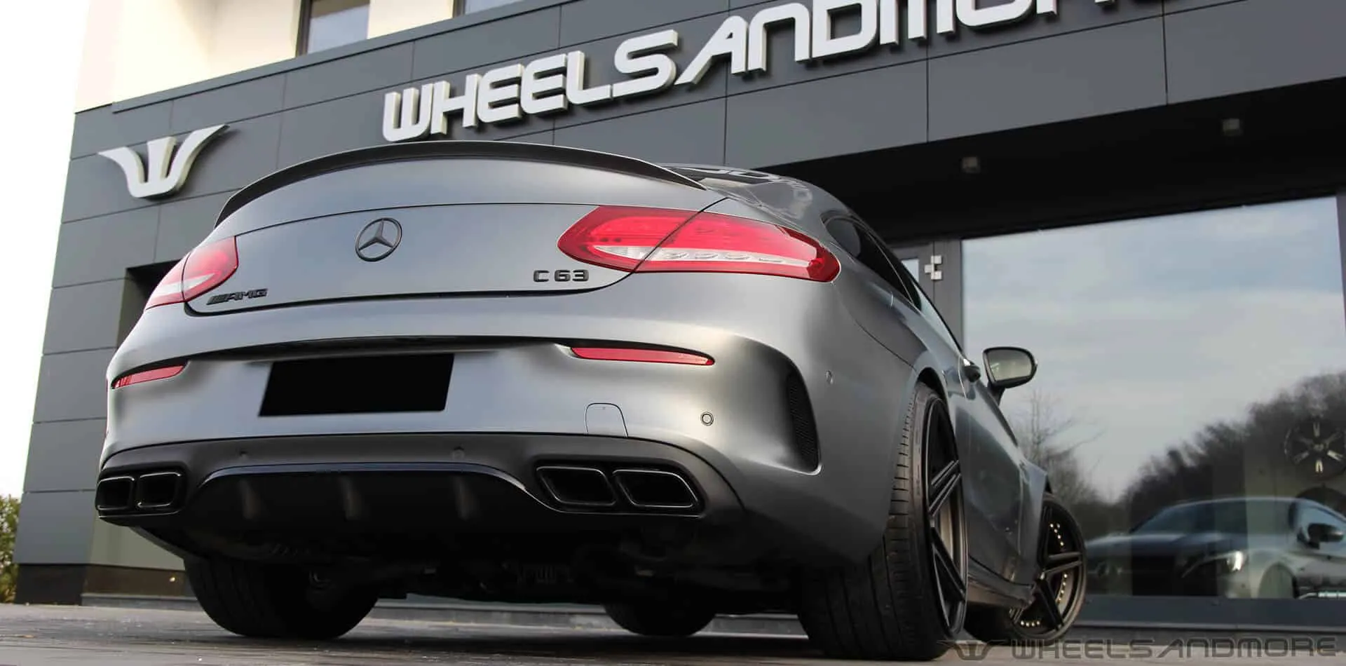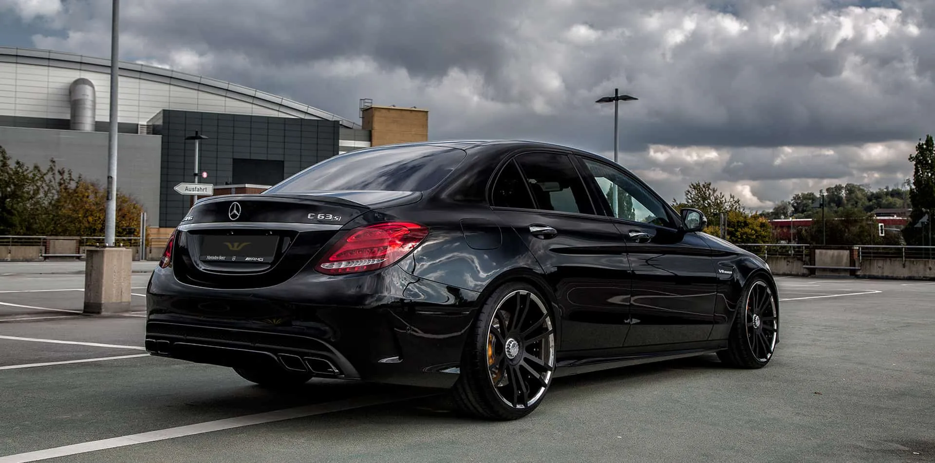Mercedes C63 AMG Tuning – additional power, aggressive exhaust sound and perfect fitting 20 inch forged wheels from Wheelsandmore Germany