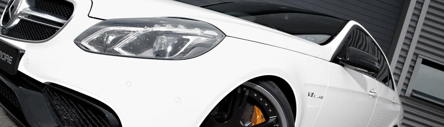 At Wheelsandmore you have the choice of the most suitable method for your performance enhancement of the Mercedes E63 AMG . Either we adapt the maps of your Mercedes E-Class AMG on a state-of-the-art dynamometer by software optimization or we install our plug-and-play additional control unit W-TRONIC to increase the performance of the engine power of the Mercedes E63 AMG up to 676hp. In addition, Wheelsandmore offers with the final tuning stage 4, called Big-Bang, a comprehensive tuning package, consisting of hardware and software for an engine tuning up to 792hp. Among other things larger turbochargers and downpipes with sport catalysts are installed at the Mercedes E 63 AMG. Our experience helps us to find the perfect match and thus to offer you the maximum driving pleasure with your E63 AMG.